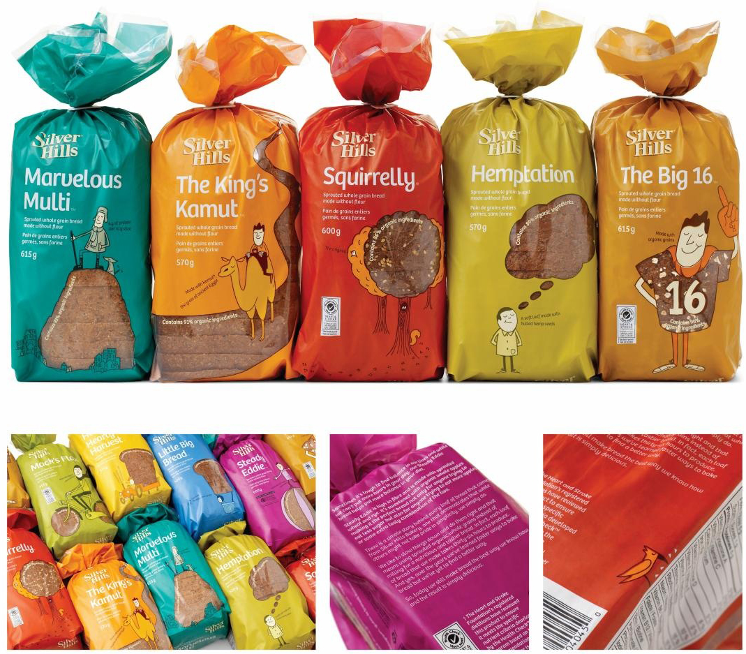 Será porque es la hora de la comida, y yo hoy estoy hambrienta, pero el caso es que me he encontrado por ahí este pack para una marca de pan de molde llamada Silver Hills. La verdad es que me divirten este tipo de propuestas, alegres, creativas y que hablan de una relación con el usuario más cercana. De momento no he encontrado más info sobre los diseñadores gráficos, ¡seguiré buscando!