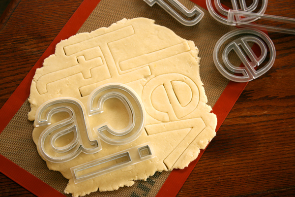 El segundo ejemplo lo encuentro súper original. Se trata de unos moldes para galletas con la forma de la tipografía suiza. Diseñadas por Beverly Hsu.