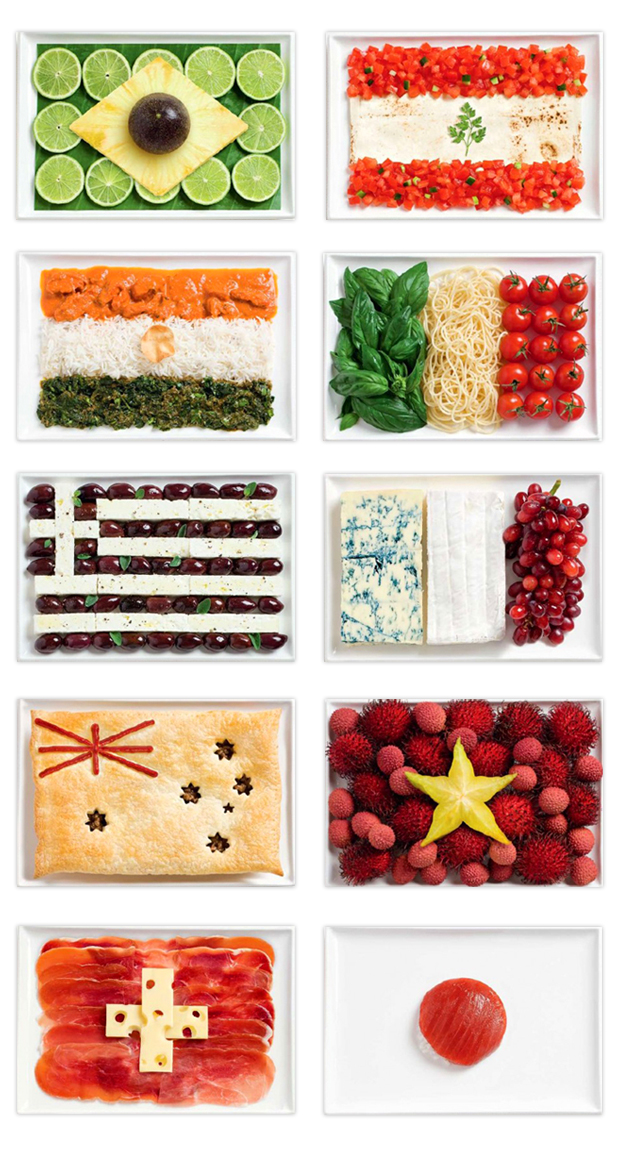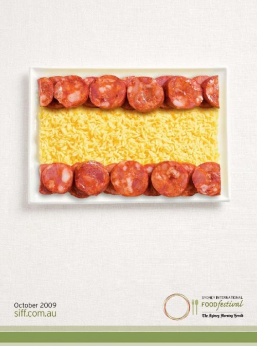 El próximo octubre se celebrará en Sidney el festival internacional de comida. Para promocionarlo han elaborado estos brillantes carteles en los que podemos ver las banderas nacionales de algunos países participantes formadas por sus productos gastronómicos más típicos. La agencia responsables es WHYBIN/TBWA de Sydney. Como era de suponer, el mayor problema para los diseñadores apareció en las banderas que contenían el color azul…