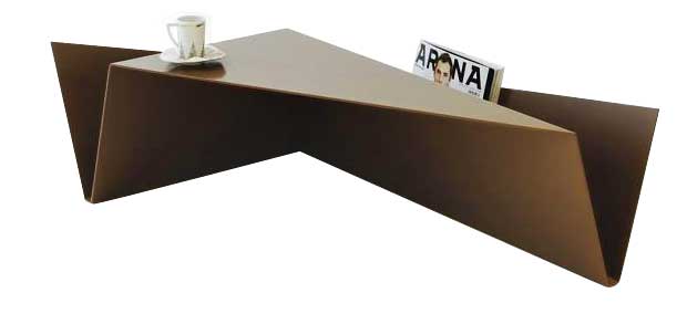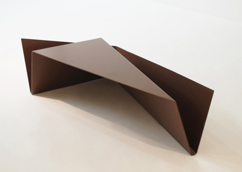 MESA-REVISTERO GORGE_Sus sugerentes formas nos remiten al arte de la papiroflexia. Está fabricada en una sola pieza: una plancha de acero doblada en forma de V.