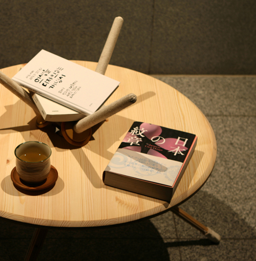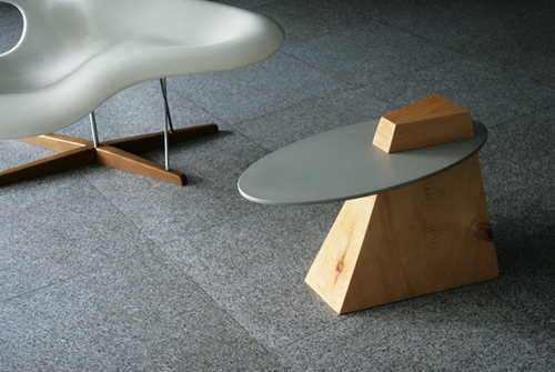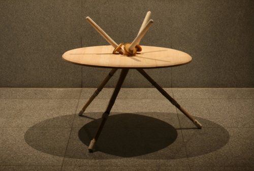 MESA KENDOTABLE_Sus tres patas sobresalen por el tablero, consiguiendo una estructura que él ha creado para sujetar objetos, como por ejemplo, libros.