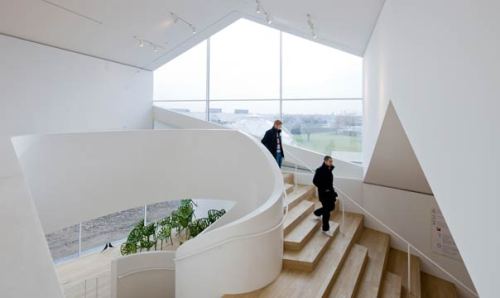 Superponiendo y fusionando unos volúmenes sobre otros obtienen espacios expositivos amplios pero manteniendo unas proporciones y dimensiones similares a las de los espacios domésticos cotidianos.