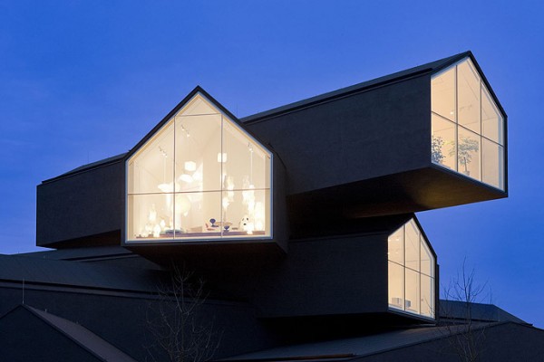 Hoy propongo viajar desde aquí hasta el que espero sea mi próximo destino «turístico». Estamos en la ciudad alemana de Weil am Rhein. Nos encontramos en el complejo industrial de Vitra. Junto al Vitra Design Museum, edificio que en 1989 proyectó Frank Ghery, se levanta VitraHaus, un nuevo espacio expositivo recién inaugurado, construido por Herzog & de Meuron, con el fin de dar hogar a la Vitra Home Collection.