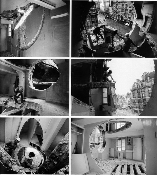 Para la bienal de arte de París en 1975, creó una de sus más conocidas intervenciones, titulada Conical Intersect. No menos representativa es su obra split house en la que cortó cuidadosamente por la mitad una vivienda de dos plantas.