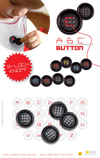 Acabo de descubrir los ABC Buttons, unos botones que tienen 9 agujeros dispuestos en 3×3. Siguiendo un pequeño patrón, se puede coser el botón, a cualquier tejido, formando las letras del abecedario, o los números del 0 al 9. De este modo, puedes customizar tu ropa o tus complementos de forma barata y original.