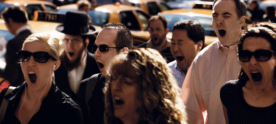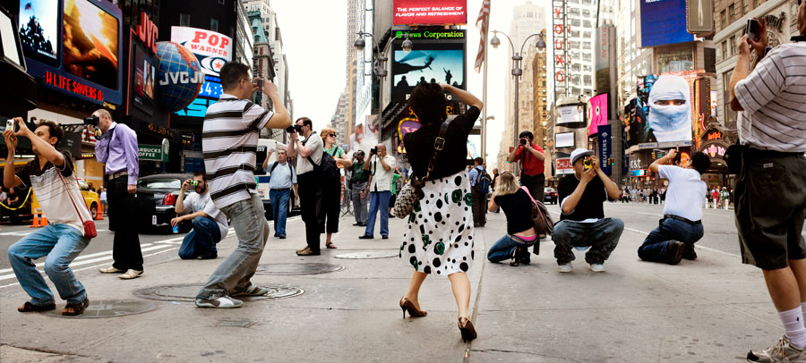 Así podemos ver una imagen en la que todo el mundo está bostezando «al mismo tiempo» (¡por cierto, el bostezo se me contagia con sólo mirarla!), otra en la que todo el mundo fotografía, o posa, etc. Al final, va a resultar que no somos tan diferentes, y que en un momento dado todos hacemos lo mismo en los mismos lugares…