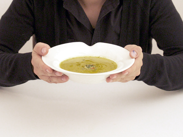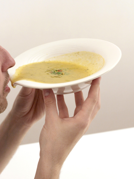 Tambíén estaría bien un plato sopero con el fondo inclinado hacia un lado para evitar tener que levantarlo para poder pillar las ultimas cucharadas.