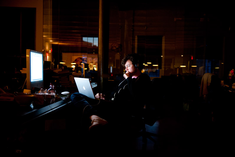 Descartando el hecho de que las imágenes parecen sacadas de un anuncio de Apple, y de que algunas me dan la sensación de ser demasiado posadas o preparadas, tengo que admitir que me gusta la atmósfera que se percibe (parecida a la que me rodea a mi ahora mismo). Un individuo sólo, rodeado de poca luz (la de su pantalla y alguna lamparita de mesa), generalmente de noche (que es cuando se suele sacar un rato para escribir) y concentrado en sus pensamientos.