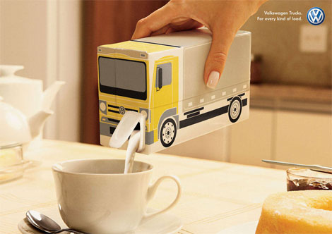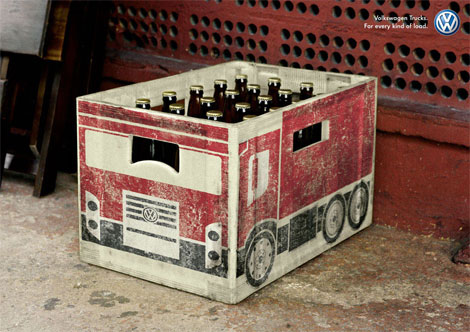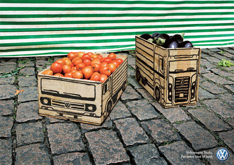 Esta es una campaña de marketing print muy eficaz. Una publicidad que va dirigida a los compradores de los vehículos comerciales de la gama Volkswagen. «For every kind of load«, o lo que es lo mismo, para todo tipo de carga.