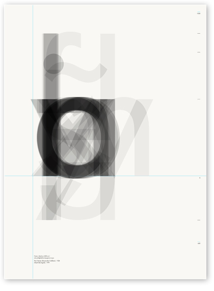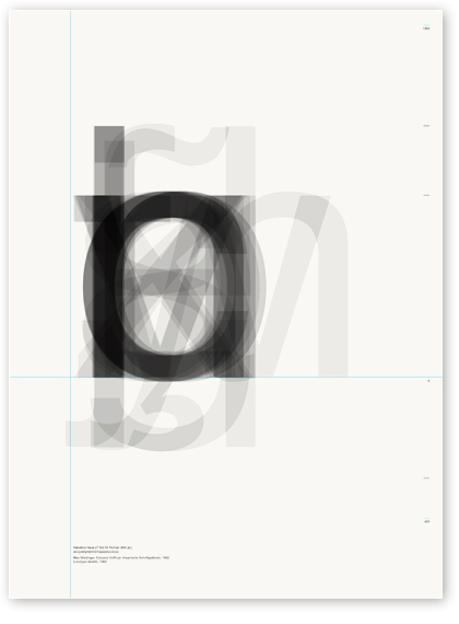 Los carteles muestran, mediante la combinación superpuesta de todas las letras del alfabeto, en minúscula, una aproximación de la forma esencial de cada tipografía y de sus particularidades. Han sacado una edición limitada de 100 unidades por tipografía. Los carteles tienen una medida de 34.5 x 47 cm y están impresos a 2 tintas, negro y Pantone 3125, se pueden comprar en su web desde 15 €.