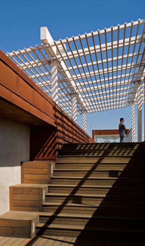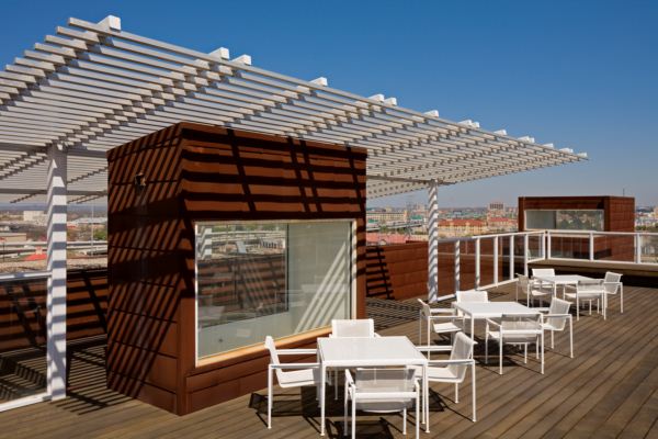 En la azotea, el volumen elevado de la galería, realizado en acero cortén, es un espectacular espacio para el ocio.