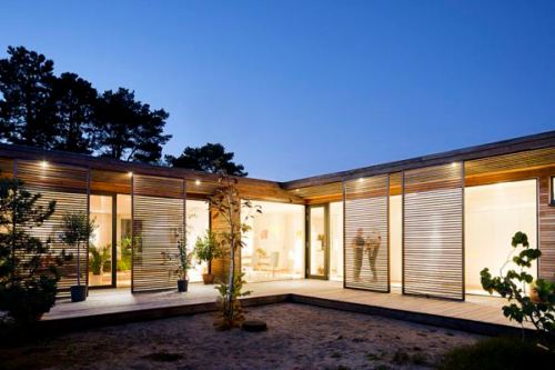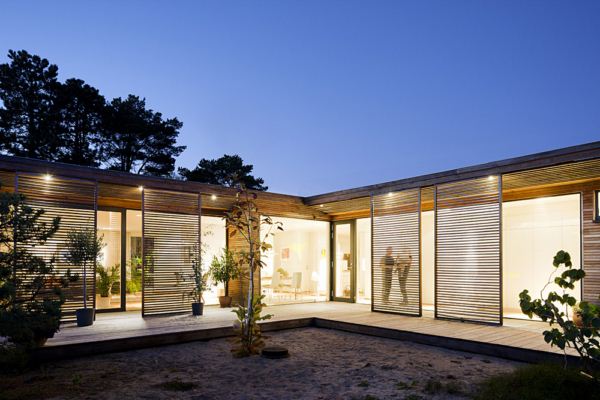 La casa, que forma un ángulo alrededor de un jardín interior , se asienta en la tradicional casa atrio danesa de las décadas de los años sesenta y setenta.