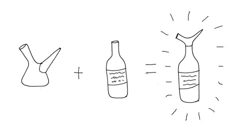 2. La idea es buena, pero esto no es un porrón ni nada que se le parezca. El diseño del porrón es perfecto, porque tiene un cuello que permite sujetarlo con la mano y girarlcon la muñeca, lo que no se consigue con este remedo insertado en una botella.