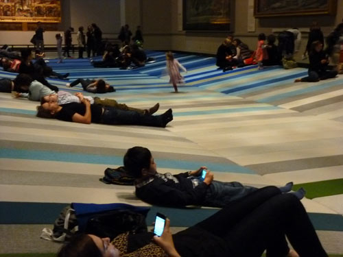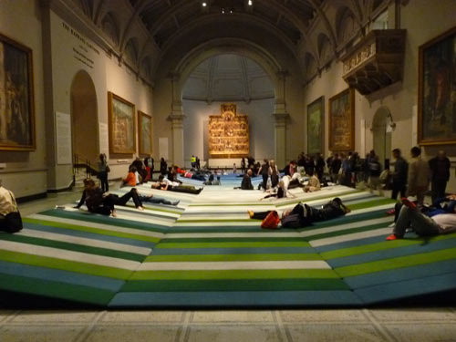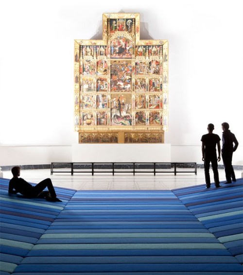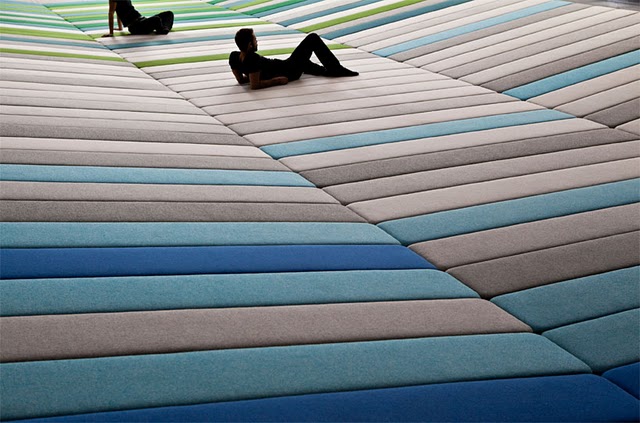 Con Textile Field los diseñadores nos invitan a sentarse y descansar en el «lounge» lleno de color y contemplar las obras desde una nueva perspectiva y posición de relajación.