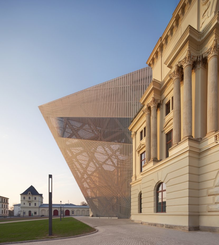 Espectaculares las imágenes que nos llegan de la ampliación del Museo de Historia Militar de Dresde, Alemania. Después de permanecer dos décadas cerrado al público, Daniel Libeskind ha sido el encargado de su rediseño, en el que destaca la cuña triangular de acero, hormigón y vidrio que atraviesa la fachada original de 1897.