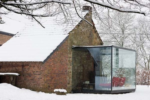 ¡Buenos días! Se empieza a notar el frío por mi ciudad, así que he pensado que hoy es un buen día para hablar de esta reforma de una pequeña vivienda rodeada de nieve. La obra, que se encuentra en Bélgica, es del 2002 y es un proyecto de AABE Erpicum & Partners.