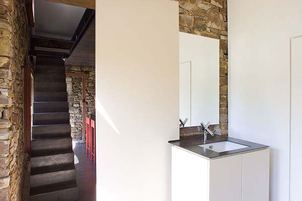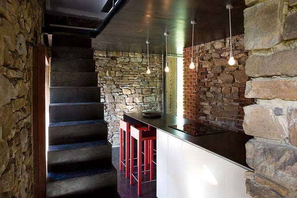 Como se puede ver en las imágenes, los elementos propios del edificio original se mantienen, con un lenguaje claro y muy potente (nadie puede apartar la vista de esos gruesos muros de piedra o del ladrillo visto) pero se introducen lenguajes nuevos (el acero, la iluminación indirecta, el cubo de vidrio o el juego de niveles) que hacen que la pequeña vivienda se transforme en un espacio lleno de intención.
