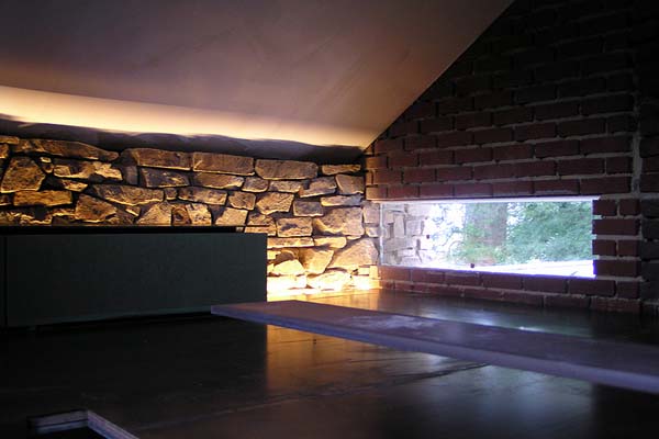 El objetivo era introducir láminas de acero en la estructura existente para crear una planta entresuelo; y extender estas hojas hacia el exterior con el fin de crear una sala de estar encerrada exclusivamente en un cubo de vidrio que se abre generosamente al entorno natural.