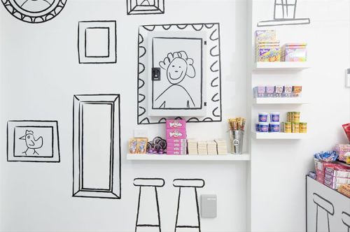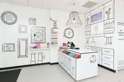 La tienda tiene un diseño que juega con el concepto de ilusión y dibuja el niño interior de cada cliente mediante una conexión fuerte con la niñez, la fantasía, la ficción y, por supuesto, los dulces.