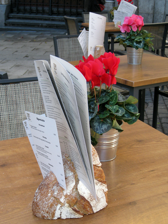 Y por lo visto, está de moda lo de usar las hogazas de pan como reposamenús. Este es del Le Pain Quotidien… mmmm!