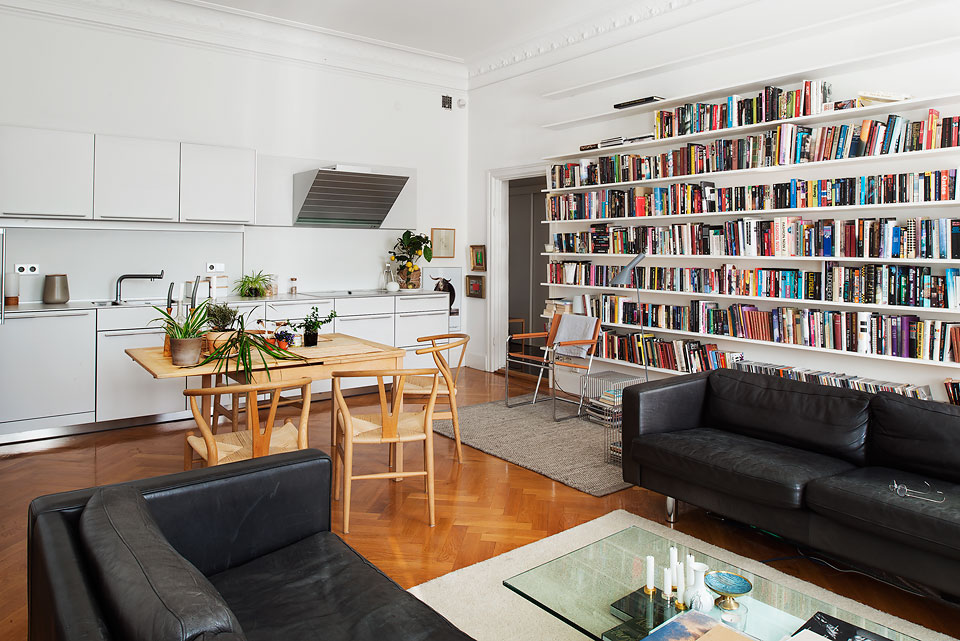 Este pequeño apartamento en Estocolmo tan sólo tiene 62 m² pero al ver las imágenes descubrimos estancias amplias y espaciosas, con techos altos, grandes ventanales que aportan luz natural y muchos rincones bien aprovechados con detalles de decoración prácticos y personales.