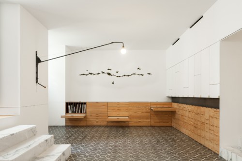 Me encanta la pared divisoria en carpintería lacada en blanco entre la cocina y el comedor y todos los elementos históricos restaurados, como son los suelos, las molduras, las alacenas empotradas y la chimenea.