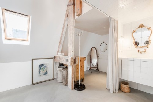 Es un quinto piso exterior con 87 m² útiles, divididos en una entrada con vestidor, una amplia cocina con comedor, un salón con chimenea y acceso a un balcón, un despacho, un dormitorio con vestidor y un baño completo y lavandería anexa.
