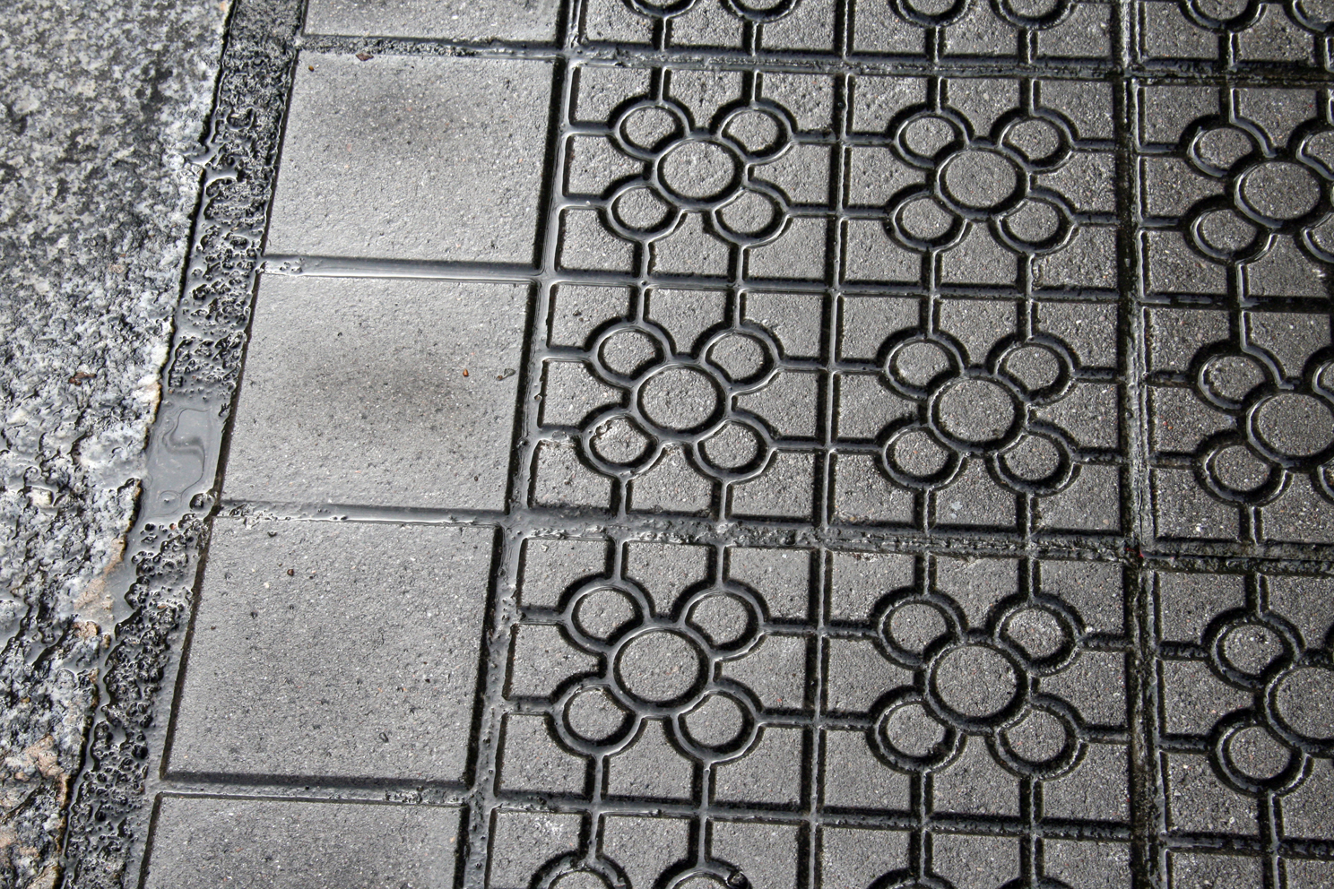 Pero, sin duda, su mayor virtud es que gracias a esos relieves en forma de flor, se crean unos surcos por los cuales el agua se encauza, saliendo por sus ocho canales que desaguan la lluvia, evitando así resbalones.