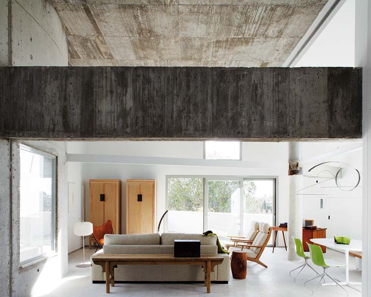 Se construye un gran espacio central para el salón y la cocina, alrededor del cual se ordenan las distintas piezas destinadas a habitaciones. Se trabajan materiales básicos: agua, hierro, cemento y la piedra existente; se aligera el interior sustituyendo los muros de carga por ligeros pilares metálicos. En el patio se construye una fuente donde, de manera natural, brota el agua de una roca contribuyendo a refrescar la vivienda en los meses más cálidos.