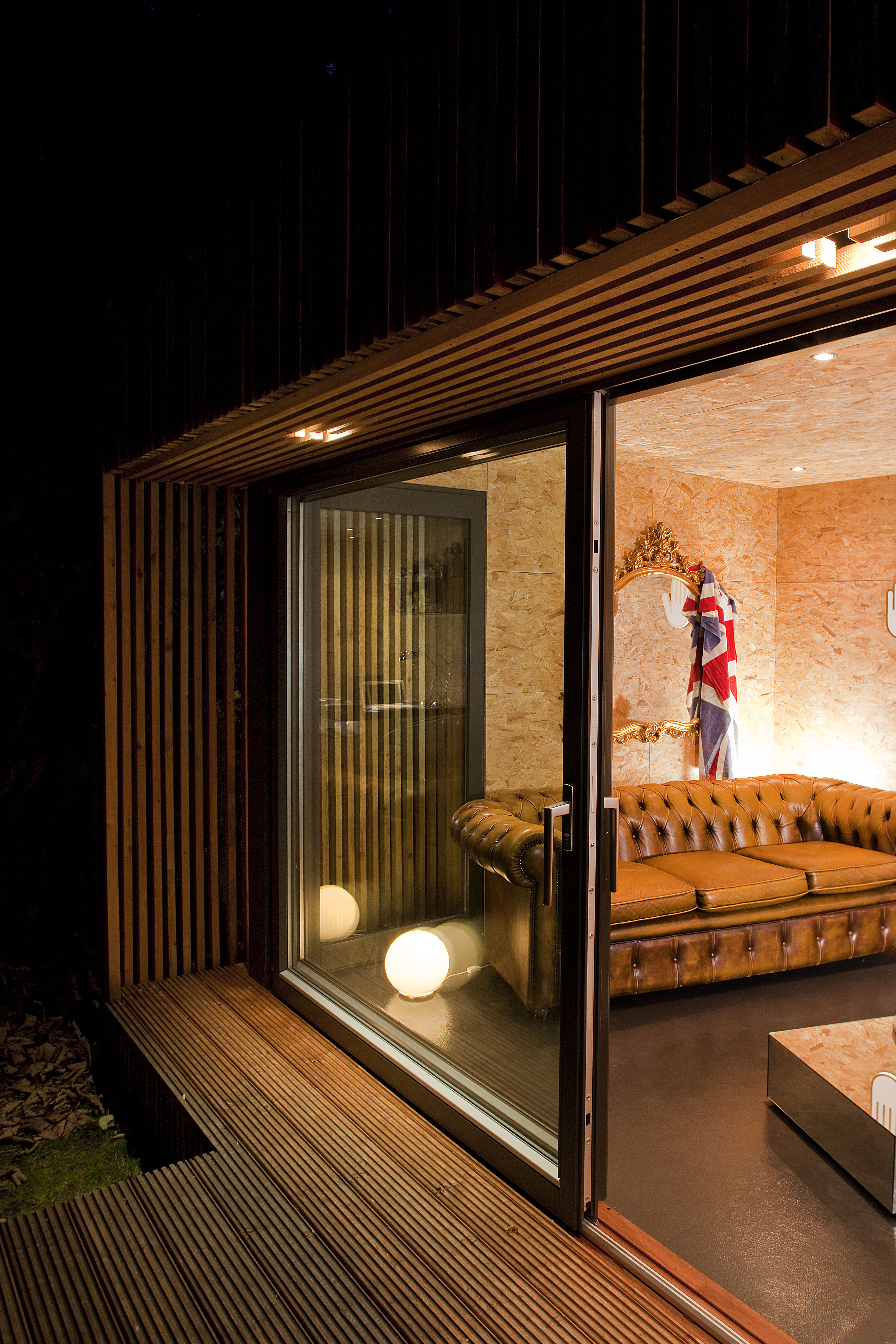 Aprovechando una pilastra existente, el estudio creó un módulo añadido al espacio. De esta forma, conseguían un nuevo núcleo para el comedor y la sala de estar, a la vez que conectaban el interior de la casa con el porche y el jardín. El cerramiento de este módulo puede abrirse al exterior durante los meses de verano.
