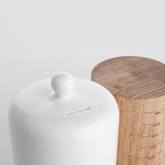 Otro de esos objetos que ya ha pasado a formar parte de mi lista de deseos es esta hucha de cerámica y madera, llamada dos pavos. Ahora intentamos recopilar monedas y las guardamos en una lata vieja, que también tiene su encanto… Pero estoy segura de que con esta hucha la motivación sería mucho mayor, por eso de ir viendo cómo por el peso de las monedas de dos pavos ;) la hucha va cambiando de altura, indicando el dinero que hay ahorrado dentro.
