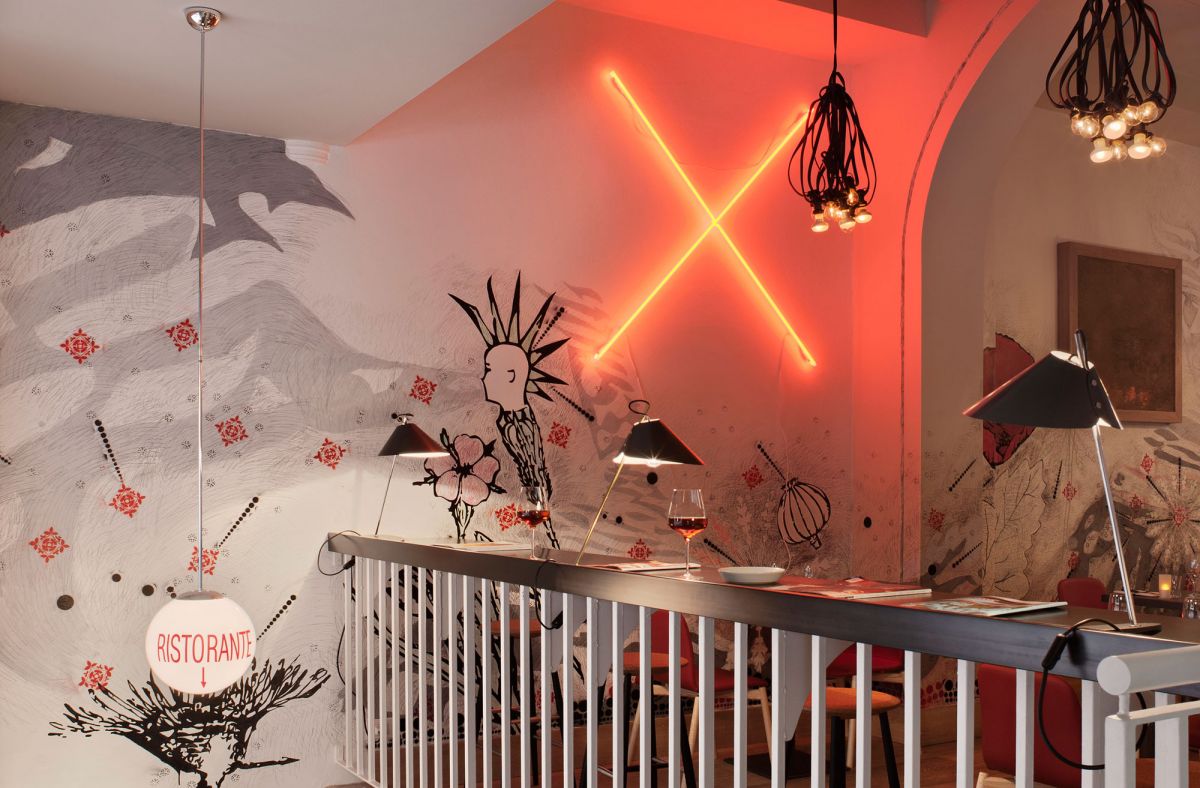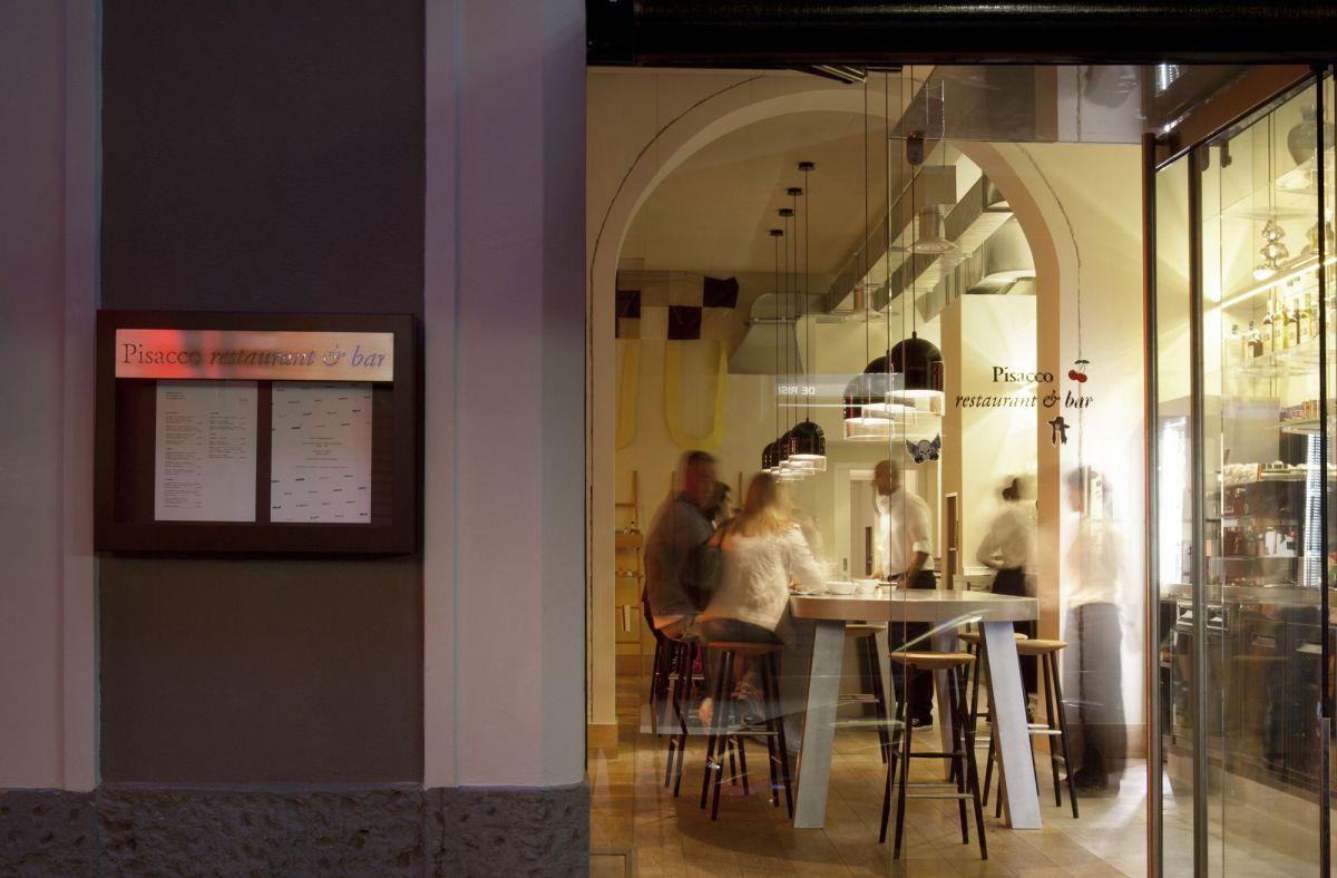 Etiquetado ambiente, bar, bistrot, cena, cocina italiana, comida, contraste, copas, diseño, Italia, macarra, milán, pisacco, punky, restaurante