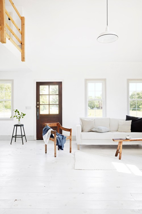 A pesar de no ser casas muy espaciosas, me encantan este tipo de viviendas en las que la desventaja de la falta de metros cuadrados se suple con grandes ventanales, suelos continuos de madera y unos techos altísimos.