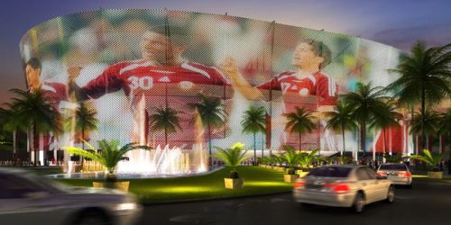 El estadio Al-Rayyan Stadium, con capacidad para 44.700 espectadores, estará revestido de una membrana especial que actuará como pantalla de televisión gigante.