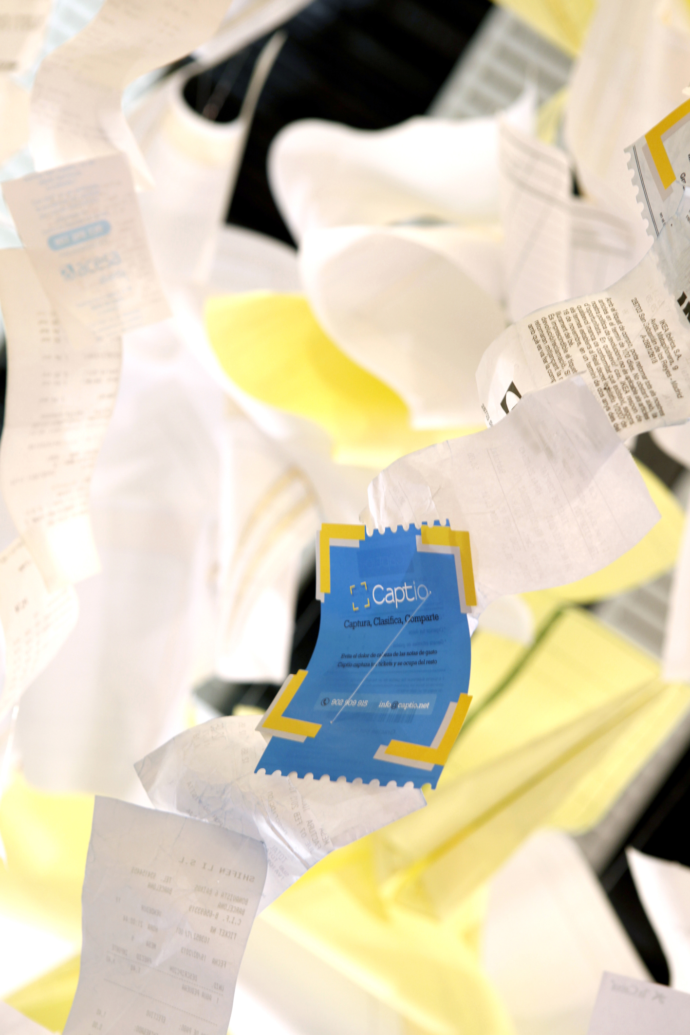 «Cubrimos el stand de una nebulosa de tickets y facturas que se iban volando. Una especie de sueño que convertía el stand en un lugar donde dejar volar la creatividad. Los tickets blancos y las facturas amarillas de acuerdo con los colores corporativos se convertían en elementos oníricos y frágiles, contrastando con la realidad de la feria, llena de elementos potentes y digitales. En el contraste queríamos hallar la riqueza de hacer compatible la más actual tecnología con aquello tradicional, sensible, hecho a mano y con cariño.»