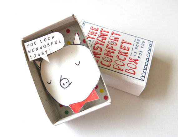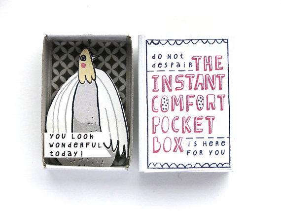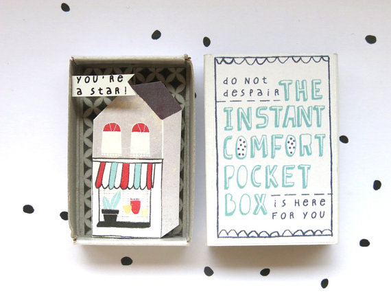 Para esos momentos en los que tus fuerzas flaquean, el ilustrador Kim Welling ha diseñado estas pequeñas cajas, hechas a mano, que pretenden darte consuelo, o ánimo, o un poquito de bienestar instantáneo.