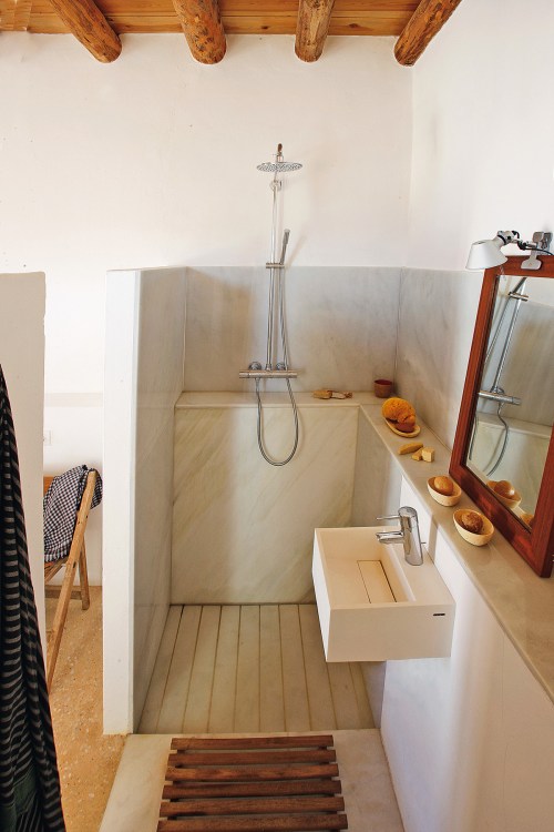 En su estado original, la casa era una païssa ibicenca totalmente en ruinas, sin agua, ni luz, que llevaba 40 años abandonada. Encargaron el proyecto a los arquitectos Martínez Lapeña y Elías Torres con una consigna muy precisa: respetar su autenticidad.