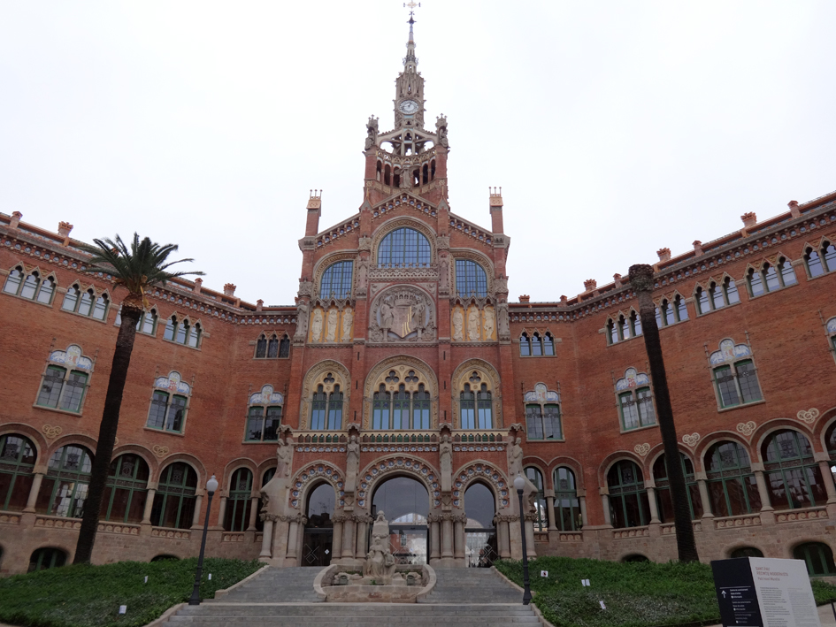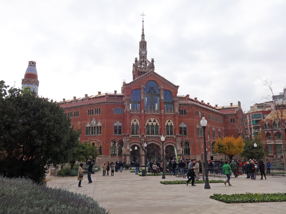El hospital, proyectado por el arquitecto modernista Lluís Domènech i Montaner entre 1905 y 1930, es una pequeña ciudad-jardín dentro del Eixample barcelonés.