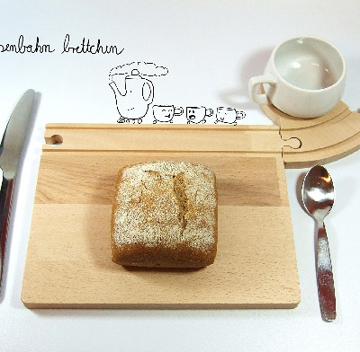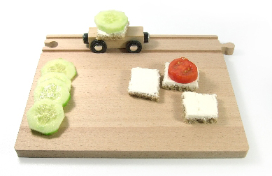 Y si quieres seguir con el tema de los trenes, hazte con estas bandejas de desayuno que incluyen un trozo de vía de tren de las de juguete de madera.