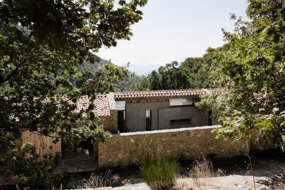 Se construye un gran espacio central para el salón y la cocina, alrededor del cual se ordenan las distintas piezas destinadas a habitaciones. Se trabajan materiales básicos: agua, hierro, cemento y la piedra existente; se aligera el interior sustituyendo los muros de carga por ligeros pilares metálicos. En el patio se construye una fuente donde, de manera natural, brota el agua de una roca contribuyendo a refrescar la vivienda en los meses más cálidos.