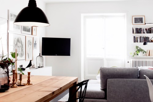 Suelos, zócalos, paredes y techos en blanco, como no podía ser de otra manera, los cuadros enmarcados en negro, mobiliario de líneas clásicas nórdicas en madera y textiles en tonos grises. La misma fórmula de siempre, pero alegrada y mejorada con los detalles personales de sus inquilinos.