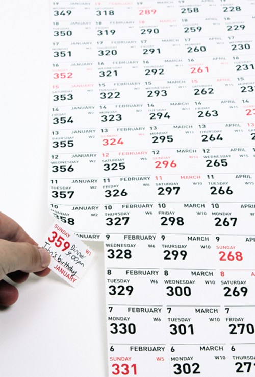 Un vértigo similar ha debido de sentir el diseñador Óscar Díaz (¿te acuerdas de él? ya hablamos de uno de sus calendarios aquí), que nos propone empezar el próximo año con la idea de disfrutar de cada momento como si fuera único, con este calendario para Doiy Design: «CARPE DIEM CALENDAR 2012: Enjoy your day before removal.»