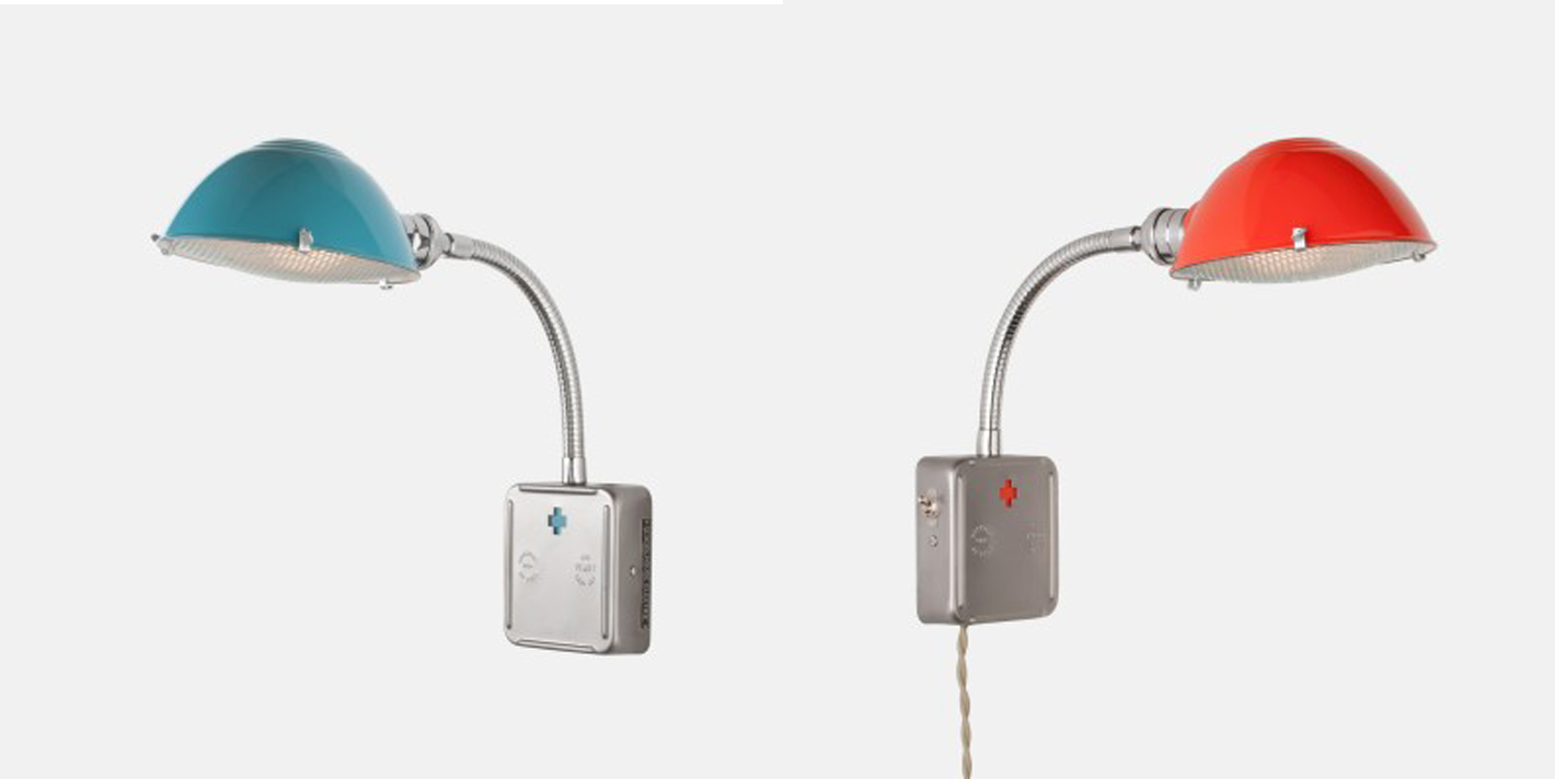 «We crushed hard on all the stamped details, including a cross, risk-of-fire warning, and wattage rating on the canopy box face. Functional communication incorporated into the design is what makes many vintage designs so rad. The perforated guard matches the original industrial parts washer diffuser, but we developed a clever way to attach it using magnets so that the thumbscrews don’t scratch the paint. This fixture is practical, colorful and flexible—a beautiful and simple example of American industrial lighting. The Radar Sconce can be hardwired into a wall or ordered with a cord to hang anywhere you please.»