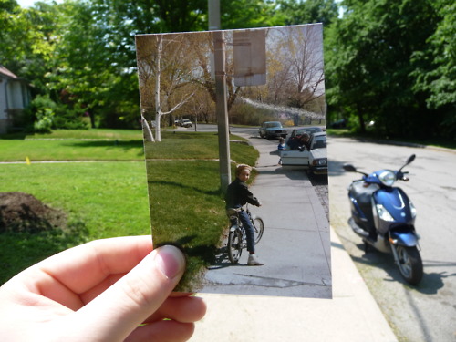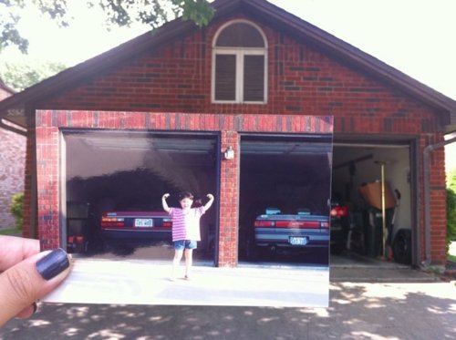 Consiste en rescatar una imagen de nuestra infancia y volverla a fotografiar superponiéndola con el entorno actual. Hay que ser un poco mañoso para hacer coincidir el punto de captura, pero el resultado es genial, aunque esté lleno de nostalgia…