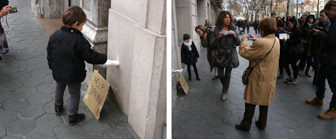 Hoy os traigo un proyecto muy reivindicativo, muy actual y muy de mi gusto. Una intervención urbana en Barcelona, con el tema de la crisis y de la mala gestión política de trasfondo.