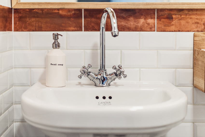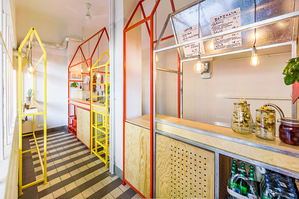 Gran parte del mobiliario se ha diseñado y construido a medida, pero hay piezas muy potentes y protagonistas que provienen de marcas como Vitra, Petite Friture, Santa & Cole y Serge Mouille, entre otras. Impresionantes lámparas, terciopelos, muebles macizos,… que además se complementan con otros diseños tradicionales polacos, que encajan a la perfección con la arquitectura conservada.