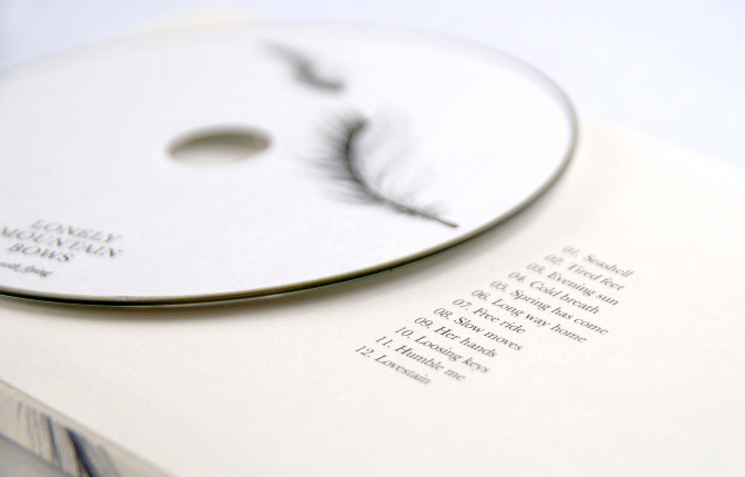 Packaging para un CD, de edición limitada, hecho combinando ilustraciones de plumas, una tipografía sencilla y diferentes texturas de papel. Las plumas son el símbolo del grupo y la ausencia de color representa la sencillez de su música.