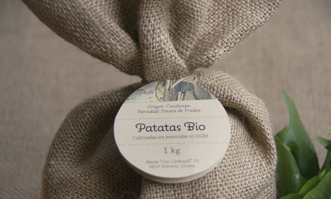 Can Carbonell es una pequeña casa de campo situada en un pequeño pueblo de Girona (España). La granja cultiva y vende frutas y verduras orgánicas sin usar pesticidas ni organismos genéticamente modificados. El embalaje respeta la filosofía de la marca, evitando el uso de materiales sintéticos o químicos, tales como el plástico. Los materiales básicos utilizados para el diseño son tela de saco, tinta negra ecológica, papel reciclado, cartón y cuerdas de fibra natural.
