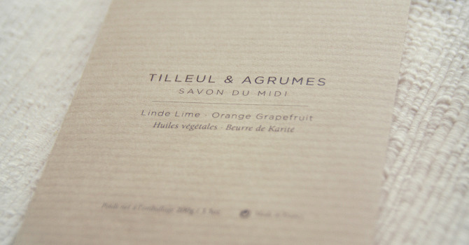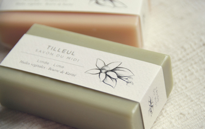 Savon du Midi se hace con manteca de karité y aceites vegetales orgánicos certificados. La mezcla de estos aceites finos crea su calidad única. Ninguno de ellos contienen grasa animal. El jabón se fabrica en pequeñas fábricas con el conocimiento transmitido de generación en generación en Provence (Francia). El packaging está hecho con productos naturales reciclados y reciclables como papel kraft para la caja y tinta ecológica negra. Cada variedad de jabón tiene una ilustración diferente.