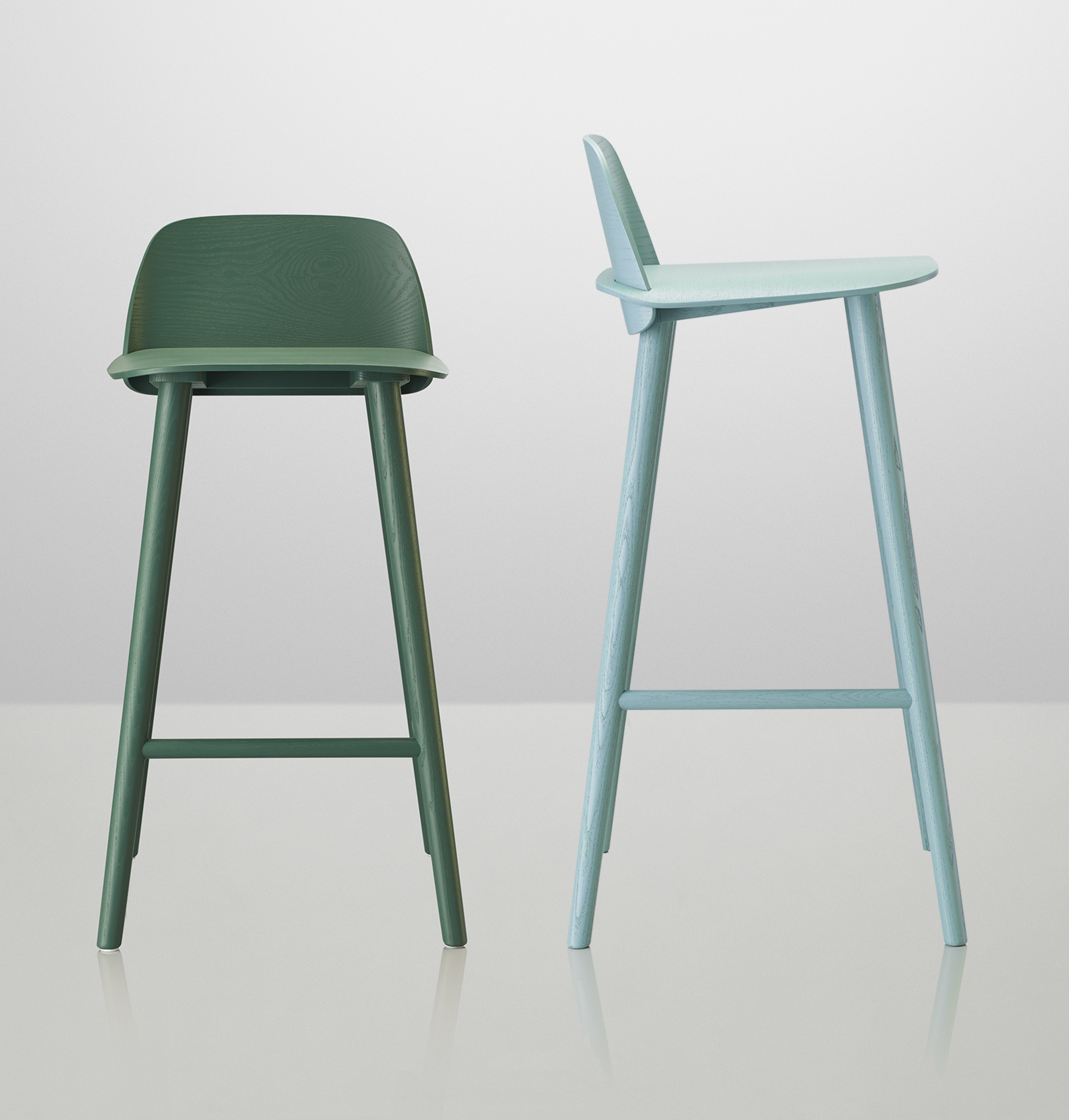 ”The Danish simplicity and the iconic expression is combined with a classic perception of a solid barstool. The shape of Nerd barstool invites the user to sit on the stool from several angles, helped by the soft, curvy plywood shell. The low backrest of the barstool gives a pleasant support and comfort.”